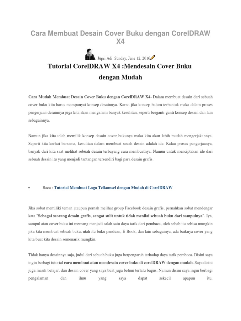 Karena di coreldraw ini yang akan dibuat adalah brosur, maka anda perlu membuka dokumen dengan tipe kertas a4. Cara paling mudah membuat cover buku dengan coreldraw x4 youtube. Setting ukuran kertas buatlah default dari tabloid. Membuat facebook cover tidak melulu hanya mengandalkan photoshop atau illustrator. Tak jarang, orang membeli buku karena gambar pada sampul buku yang menonjol. Untuk membuat punggung buku, hanya perlu menambahkan objek persegi. Tentu akan terlihat lebih menarik dan personal. Tips mendesain baliho dengan coreldraw ada permintaan dari salah satu sahabat kpci tentang cara membuat baliho mbah share dong. Sekian dulu tutorial cara membuat pamflet dengan coreldraw, kalau kalian ada pertanyaan silahkan coment di bawah. Karna disini saya membuat contoh cover buku tutorial adobe photoshop, maka gambar yang saya sisipkan adalah yang berkaitan dengan photoshop. • membuat cover atau sampul buku merupakan kegiatan kreatif yang menuntut pengetahuan tentang perwajahan. Sekarang anda bias membuat sendiri desain cover cd sesuai dengan keinginan anda. Membuat cover buku dengan coreldraw 1.