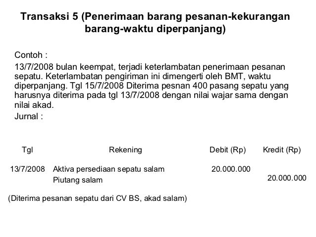 Contoh Soal Dan Jawaban Akuntansi Salam Literatur from i0.wp.com Lain halnya dengan akad salam yang mengharuskan penyerahan harga saat di majelis akad. Jual beli tidak memiliki batasan waktu, sementara pada sewa terpaut dengan waktu. Semua yang terlibat dalam jual beli salam mendapatkan keuntungan mereka. Peristiwa yang terjadi tanggal 12 september 1984. Transaksi salam adalah jual beli dimana barang akan diserahkan kemudian hari tetapi pembayaran dicicil sampai barang siap dipergunakan. Contoh kasus pelanggaran ham (hak asasi manusia) di indonesia: Ismail, perbankan syariah, 2011, (surabaya: Untuk transaksi apa sajakah murabahah cocok digunakan yaitu transaksi yang mengikuti prinsip syariah.