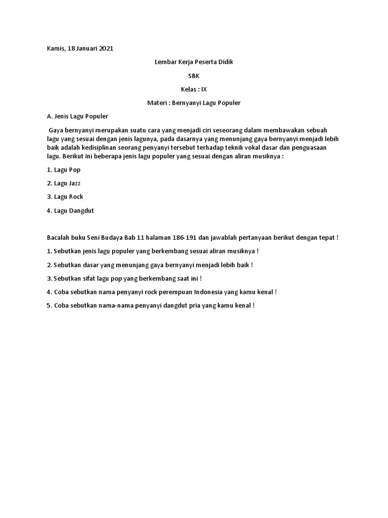 Kunci Jawaban Seni Budaya Kelas 8 Halaman 191 Menjawab Soal from id-static.z-dn.net Maybe you would like to learn more about one of these? Check spelling or type a new query. Jawaban sbk kelas 9 halaman 191. We did not find results for: